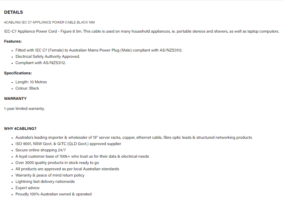 | Manufacturer: | https://www.4cabling.com.au/ |