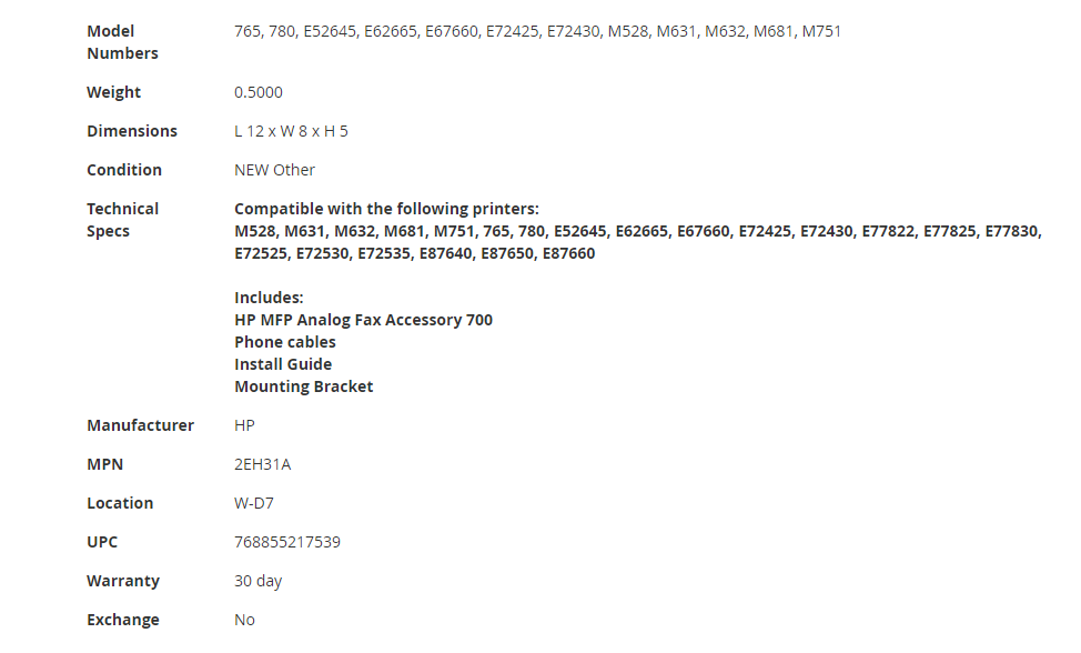 Hp Mfp Analog Fax Accessory 700 2Eh31A