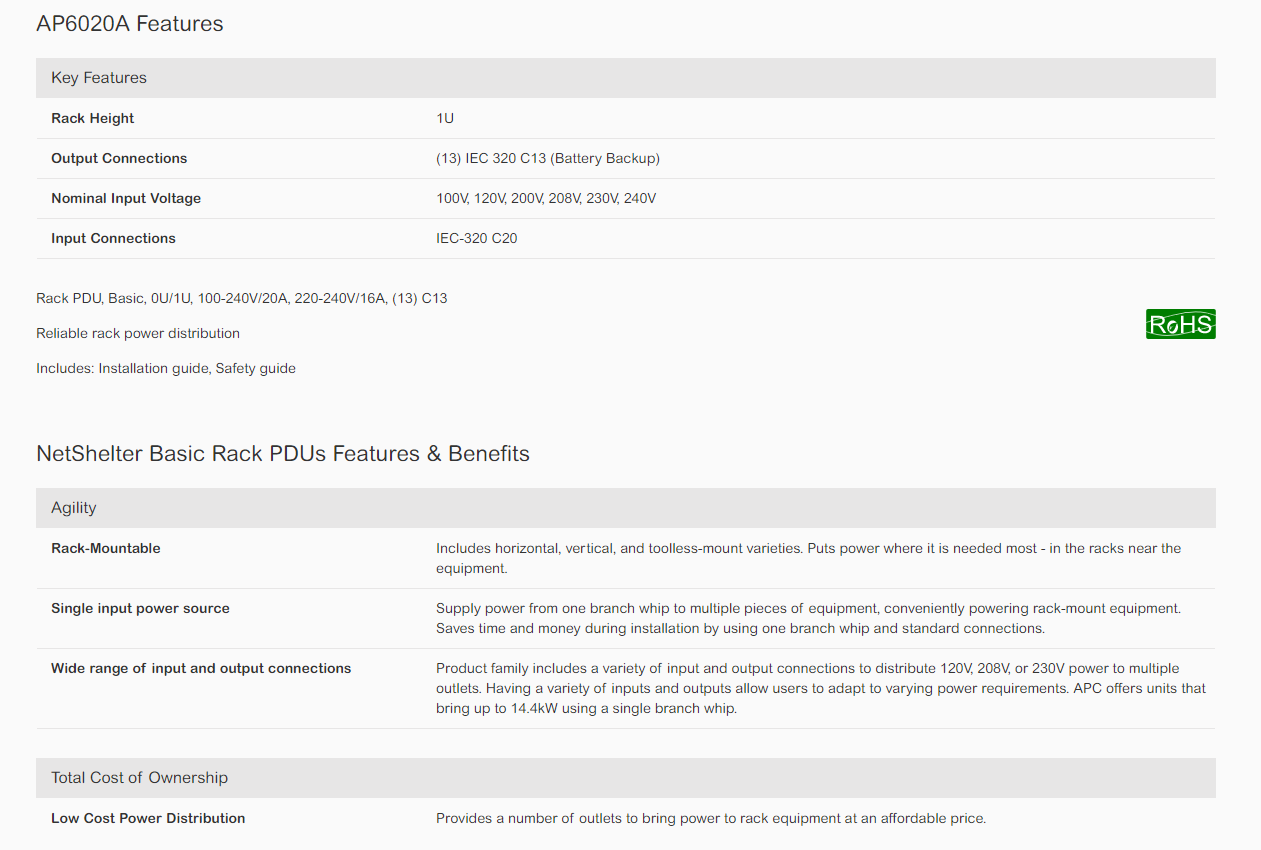 | Manufacturer: | https://www.apc.com/au/en/ |