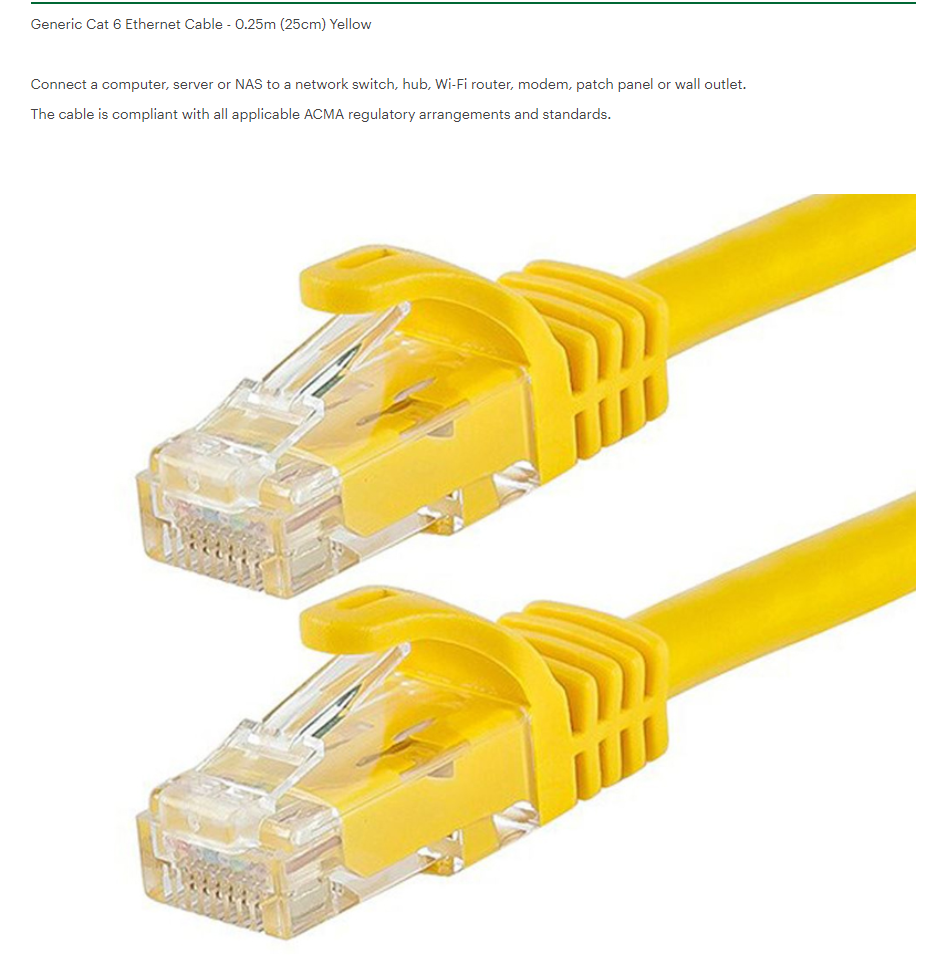 Network Cable: Cat6-A (Backward Compatible Cat6) Rj45 0.25M 25Cm Yellow Cat6-0.25M Yellow