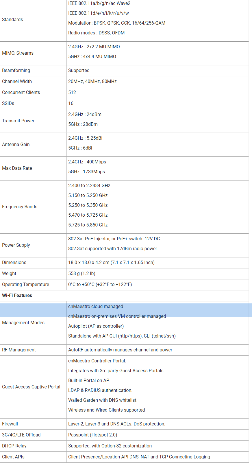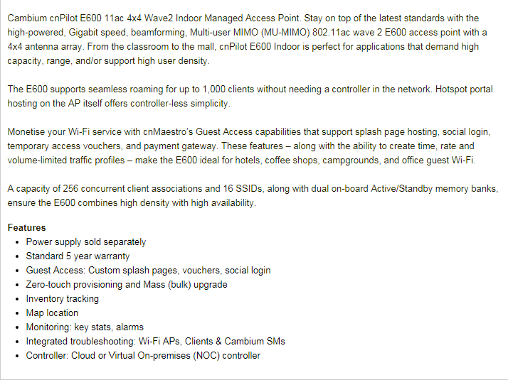 Cambium Cnpilot E600 Indoor (Row) 802.11Ac Wave 2 4X4 Ap Pl-E600X00A-Rw