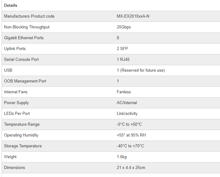 Cambium Cnmatrix Ex2010 Intelligent Ethernet Switch 8 1G And 2 Sfp Fiber Ports - Aus/ Nz Power Cord Mx-Ex2010Xxa-N