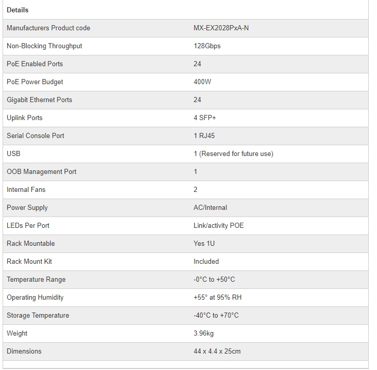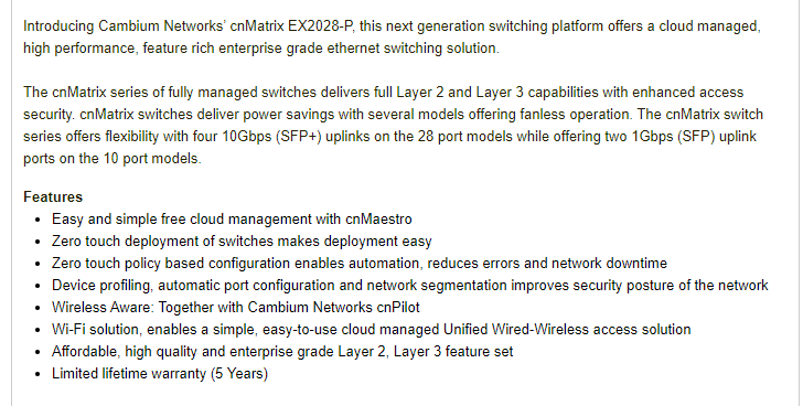 Cambium Cnmatrix Ex2028-P Intelligent Ethernet Poe Switch 24 1G And 4 Sfp+ Fiber Ports - Aus/ Nz Power Cord Mx-Ex2028Pxa-N