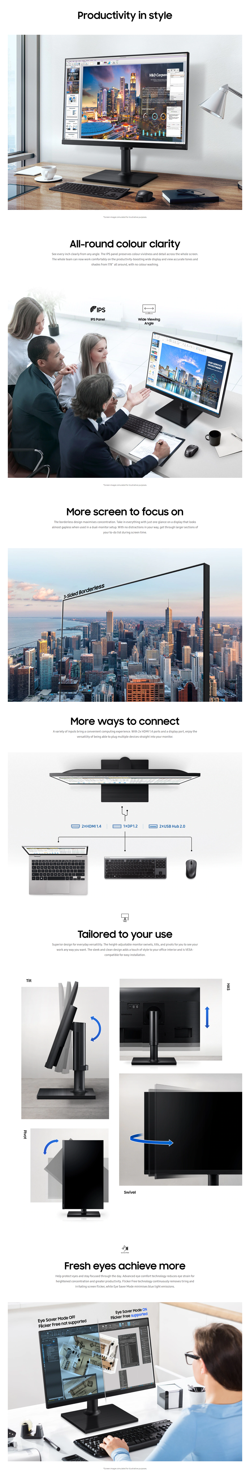 Samsung 22inch T45F LED Monitor LF22T450FQEXXY / IPS / 4MS / 75HZ / 1920 X 1080 / 16:9 / 16.7M / 2 X HDMI 1 X DP / HAS VESA
