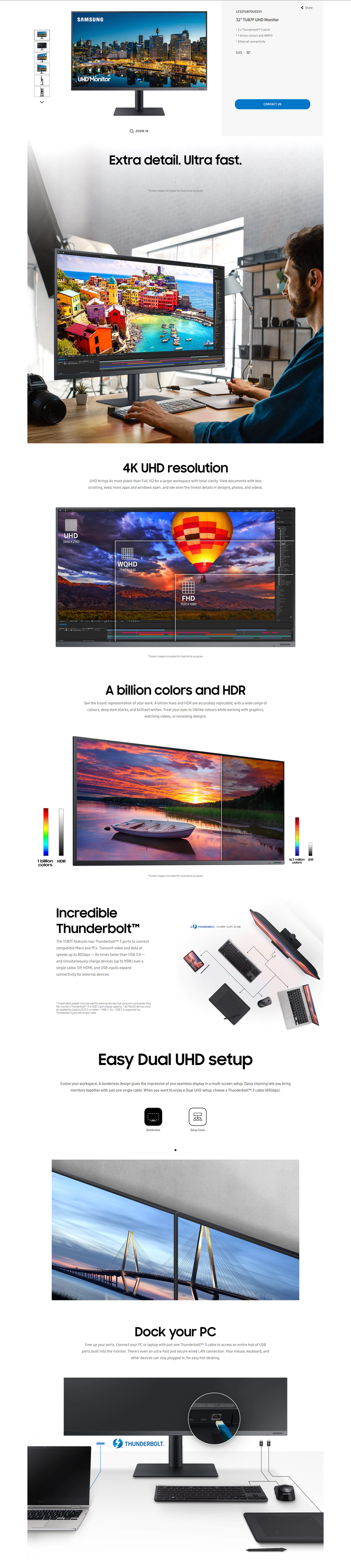 Samsung LF32TU870VEXXY 31.5IN 4K FLAT MONITOR 60HZ 3840x2160 16:9 2xTHUNDERBOLT PORTS