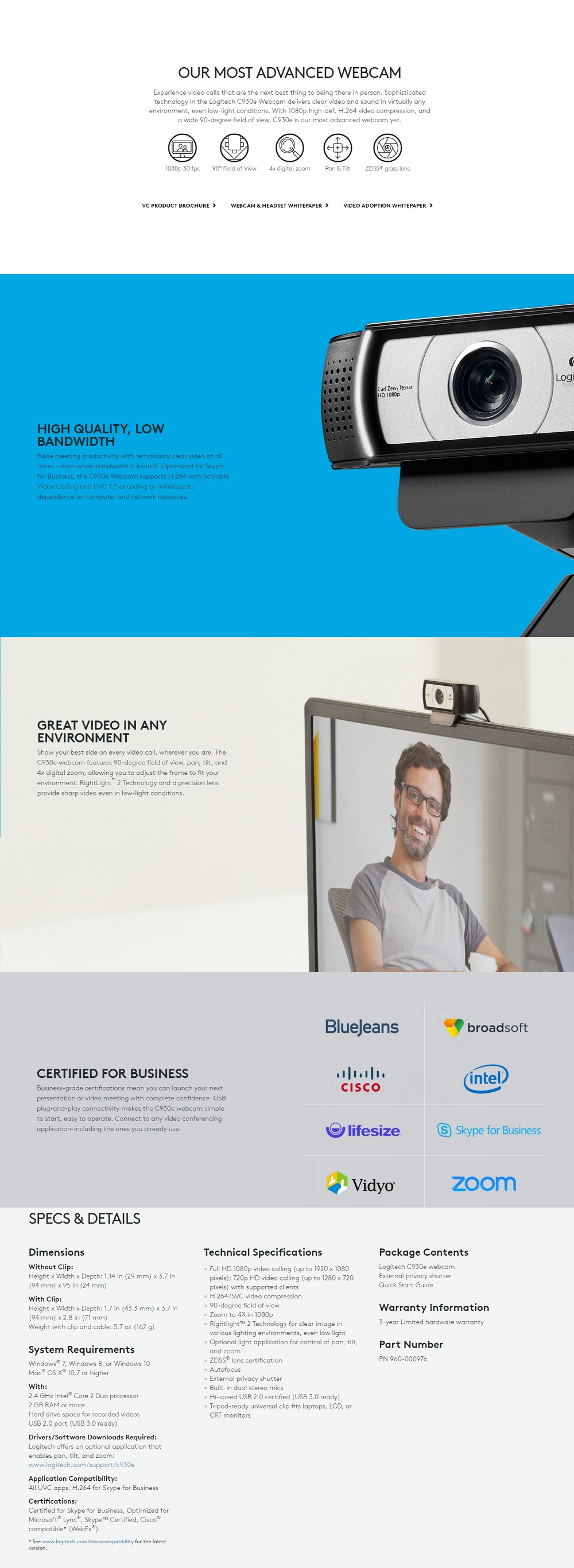 Logitech 960-000976: Logitech C930e Webcam Pro Hd 1080p Logwebcc930e