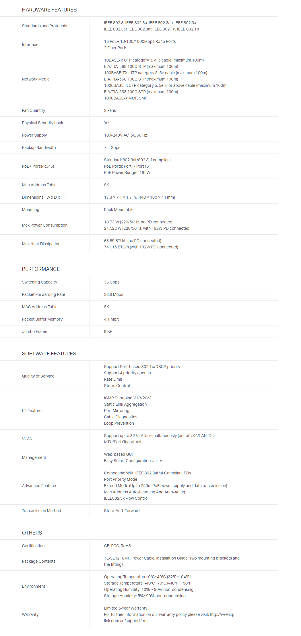 Tp-Link Tl-Sg1218Mpe Jetstream 16-Port Gigabit Easy Smart Poe/Poe+ Switch Tl-Sg1218Mpe