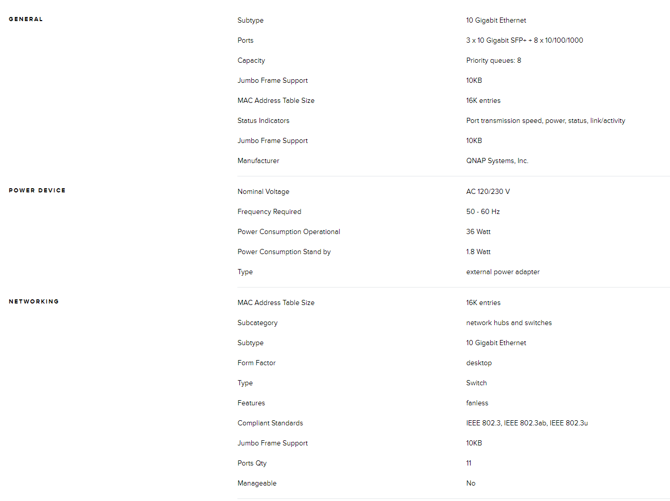 Qnap Qsw-308S 8Port 1Gbps 3Port Sfp+ Unmanaged Switch Qsw-308S