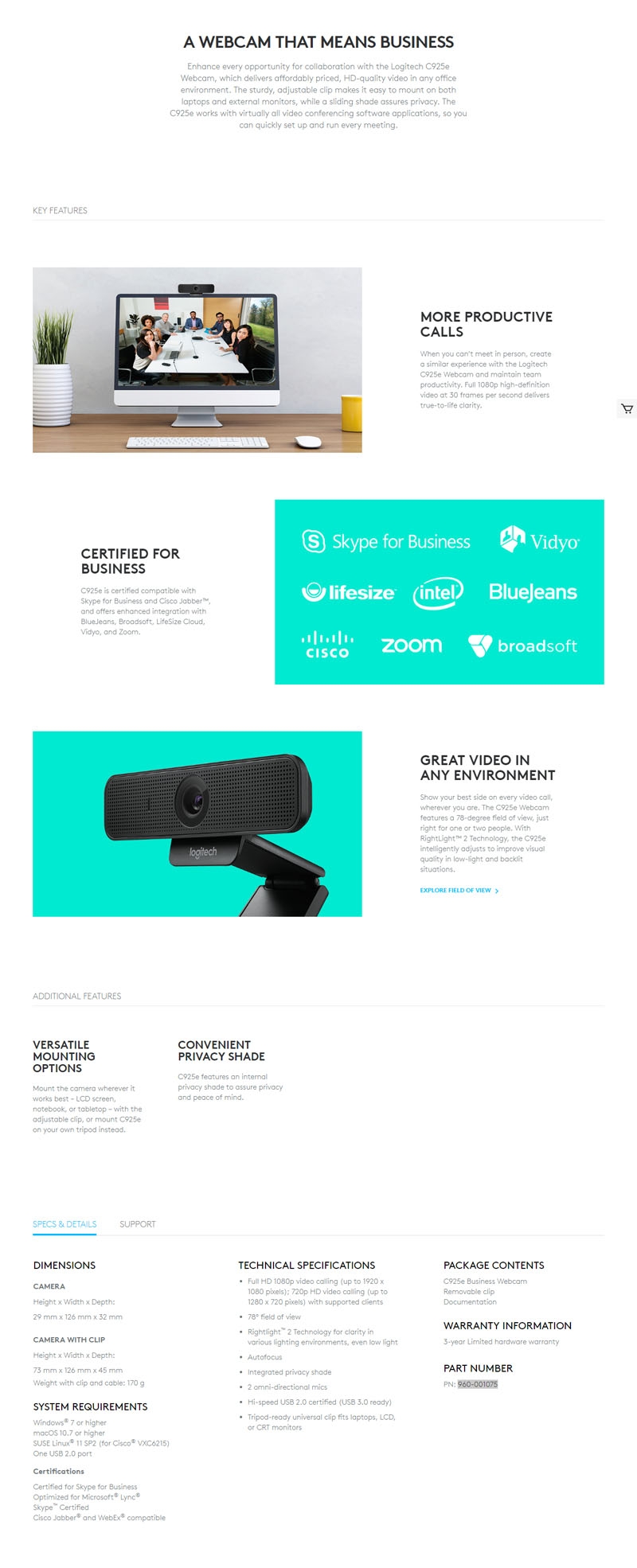 C925e Webcam and maintain team productivity. Full 1080p high-definition video at